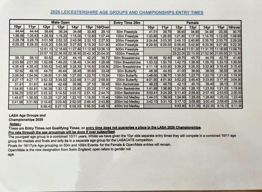 There is a national programme of competitions promoted by Swim England and British Swimming whereby swimmers may compete at local County level, Regional level and National level, subject to meeting the qualifying entry times and conditions.